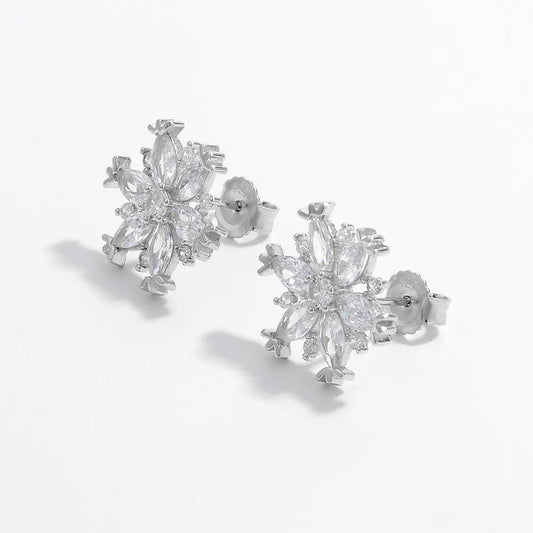 925 Sterling Silver Zircon Snowflake Earrings