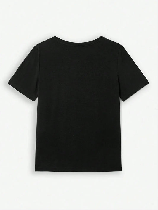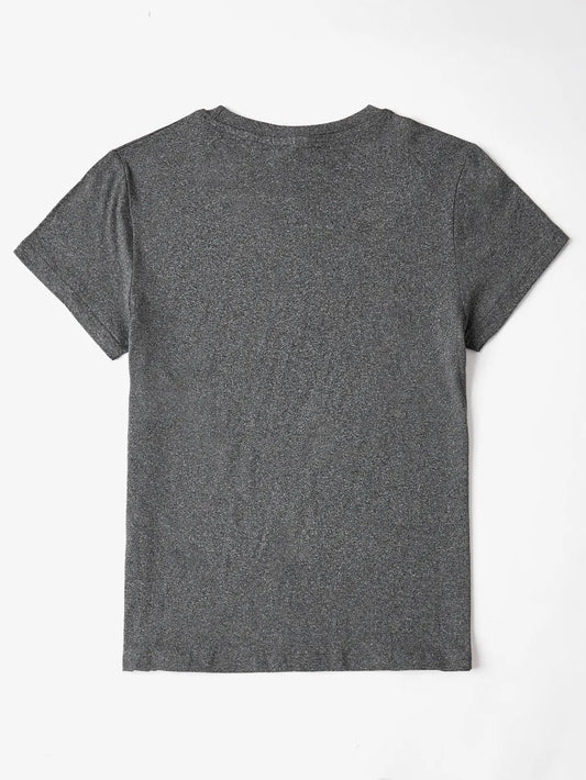 Heart Round Neck Short Sleeve T-Shirt