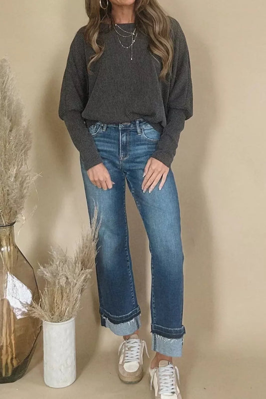 Plus Size Ribbed V-Neck Long Sleeve Top