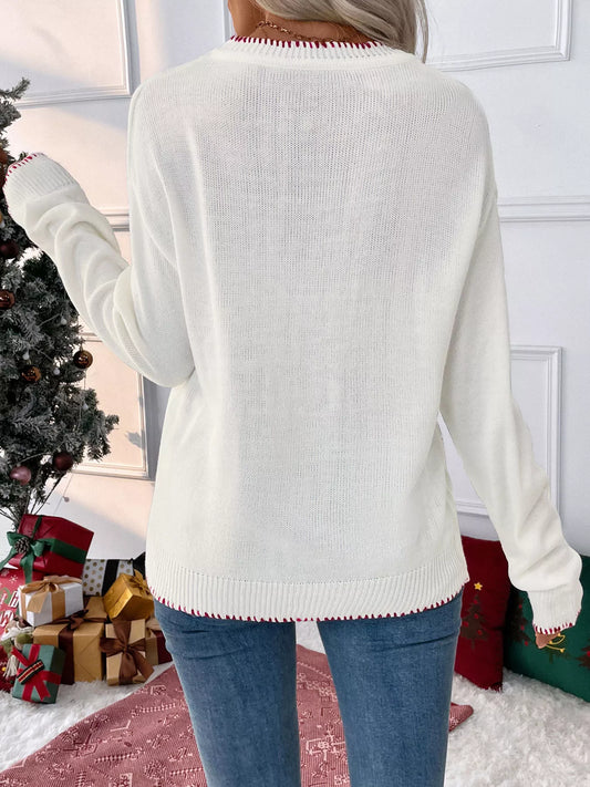 Angel Wings Bow Graphic Round Neck Long Sleeve Sweater