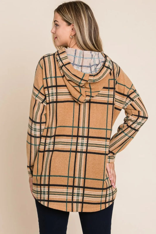BOMBOM Drawstring Plaid Long Sleeve Hoodie