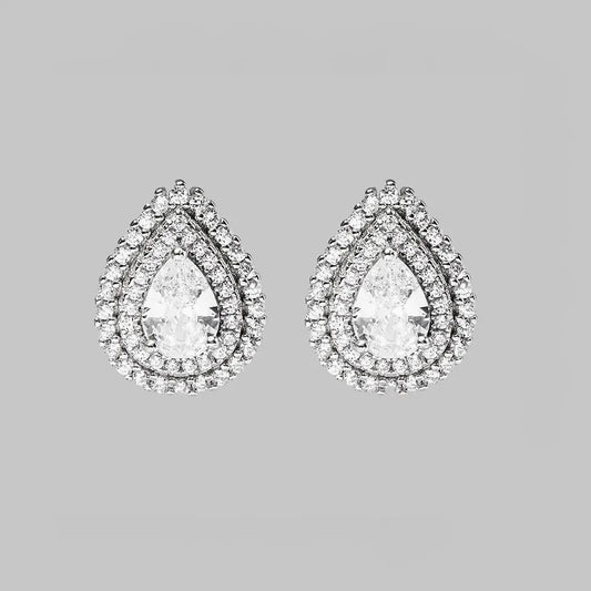 925 Sterling Silver Zircon Teardrop Shape Stud Earrings
