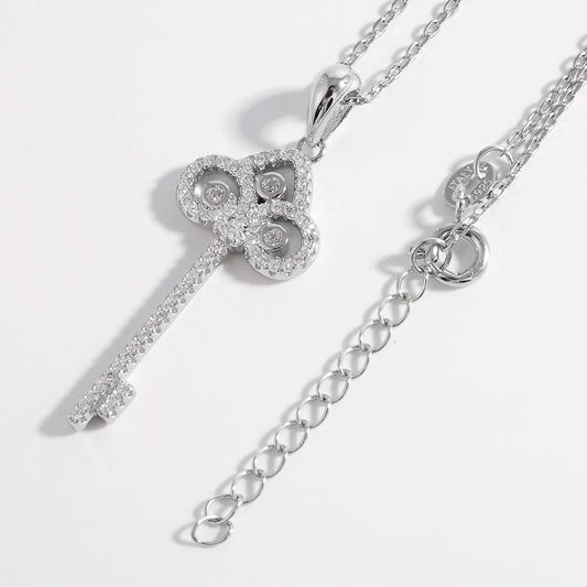 925 Sterling Silver Inlaid Zircon Key Shape Necklace