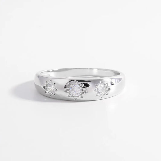Flower Shape Inlaid Zircon 925 Sterling Silver Ring