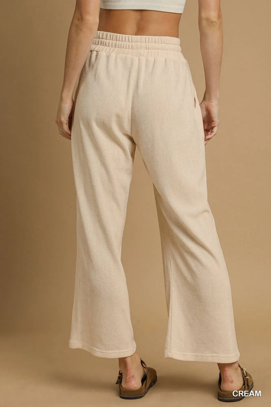 POL Elastic Waistband Wide Leg Pants with Drawstring