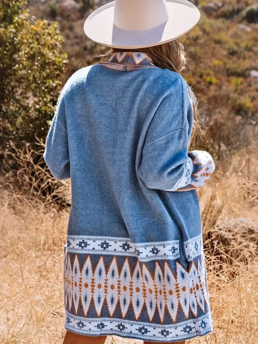 Plus Size Open Front Bohemian Style Long Sleeve Cardigan