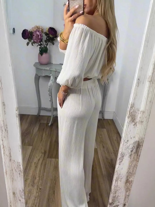 Full Size Off-Shoulder Top and Pants Set Plus Size