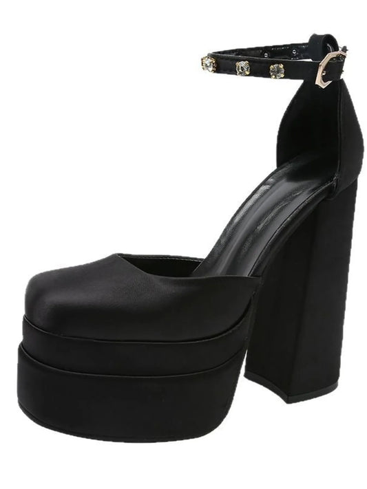 Platform Block Heel Pumps with Ankle Wrap Straps